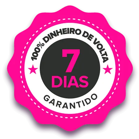 FIQUE TRANQUILA! Se não gostar do conteúdo nós, nós garantimos seu dinheiro de volta! Se por algum motivo você não gostar do treinamento, poderá solicitar o reembolso total do valor do curso a qualquer momento (dentro do prazo de 7 dias após a compra).