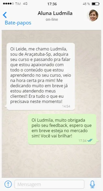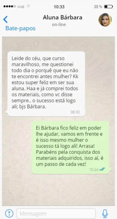Suas dúvidas poderão ser tiradas diretamente comigo e com meu time de suporte dentro da área VIP de alunas.