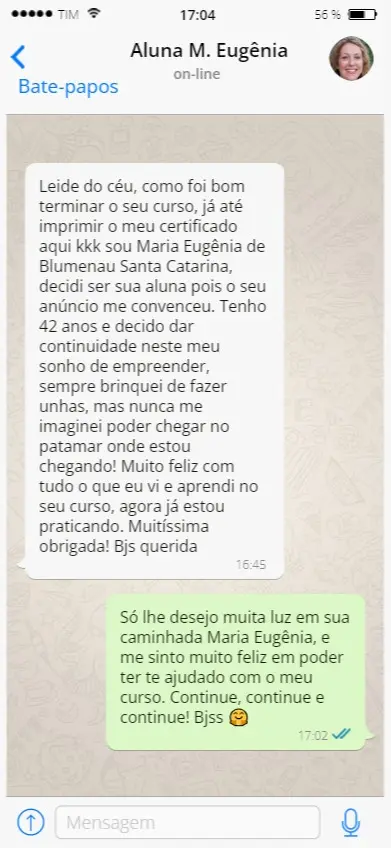 Como disse não foi nada fácil, mas me considero hoje uma vencedora e por conta de toda esta minha trajetória, estou aqui lhe dando a oportunidade de aprender comigo todo este conhecimento que possuo.